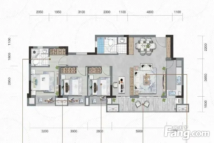 户型齐全,主打全明格局,户型方正三居
