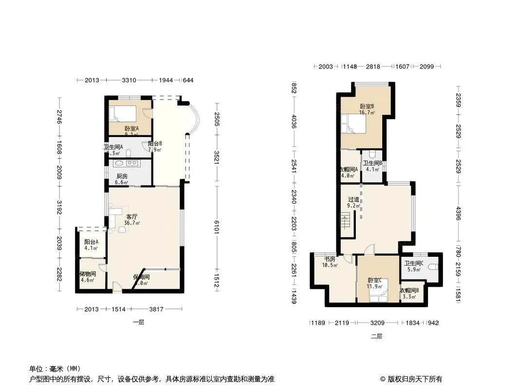 此房是跃层,空间完全利用,房间采光很好,装修很亮。