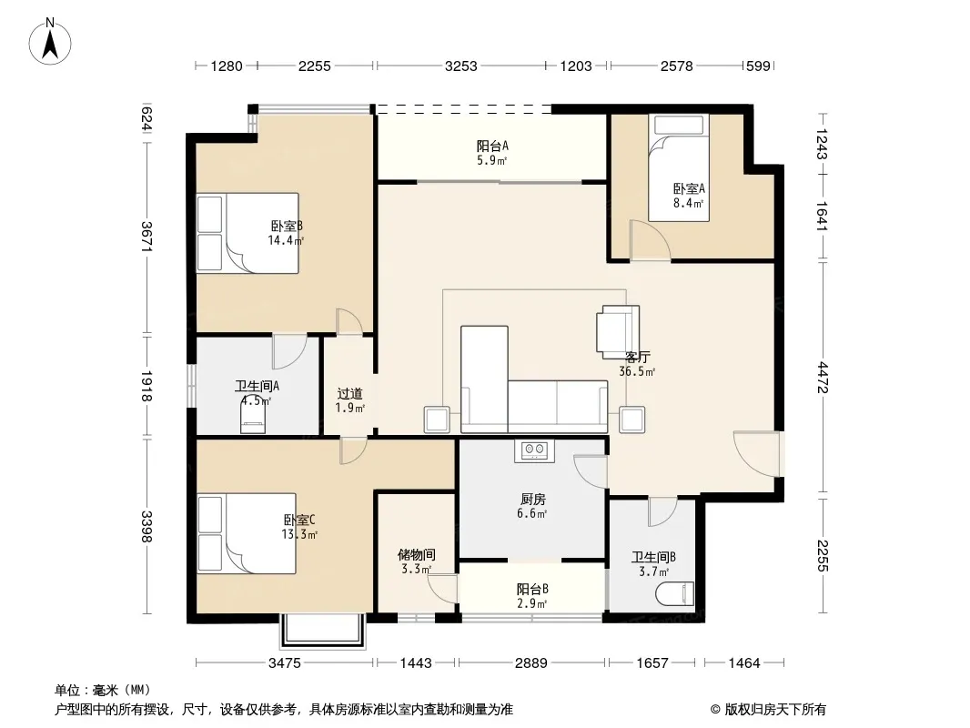 户型齐全,主打户型方正,明厨,明卫,客厅朝南,全明格局三居
