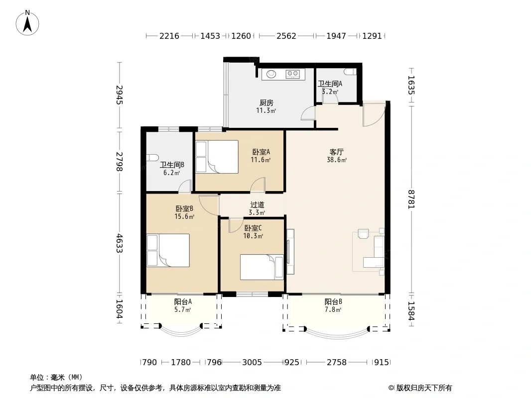*获取完整户型报告,同时会有免费语音讲解服务
