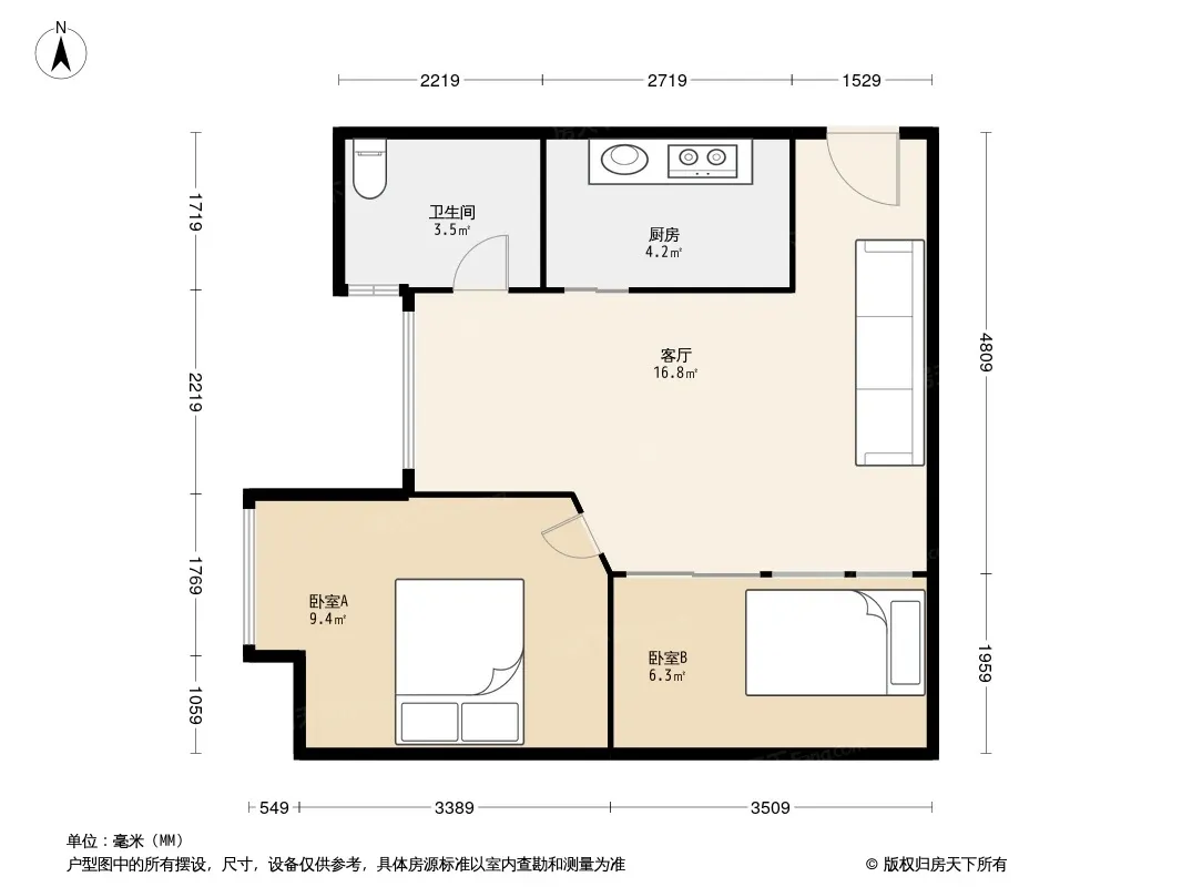 户型齐全,主打明卫,客厅朝南二居
