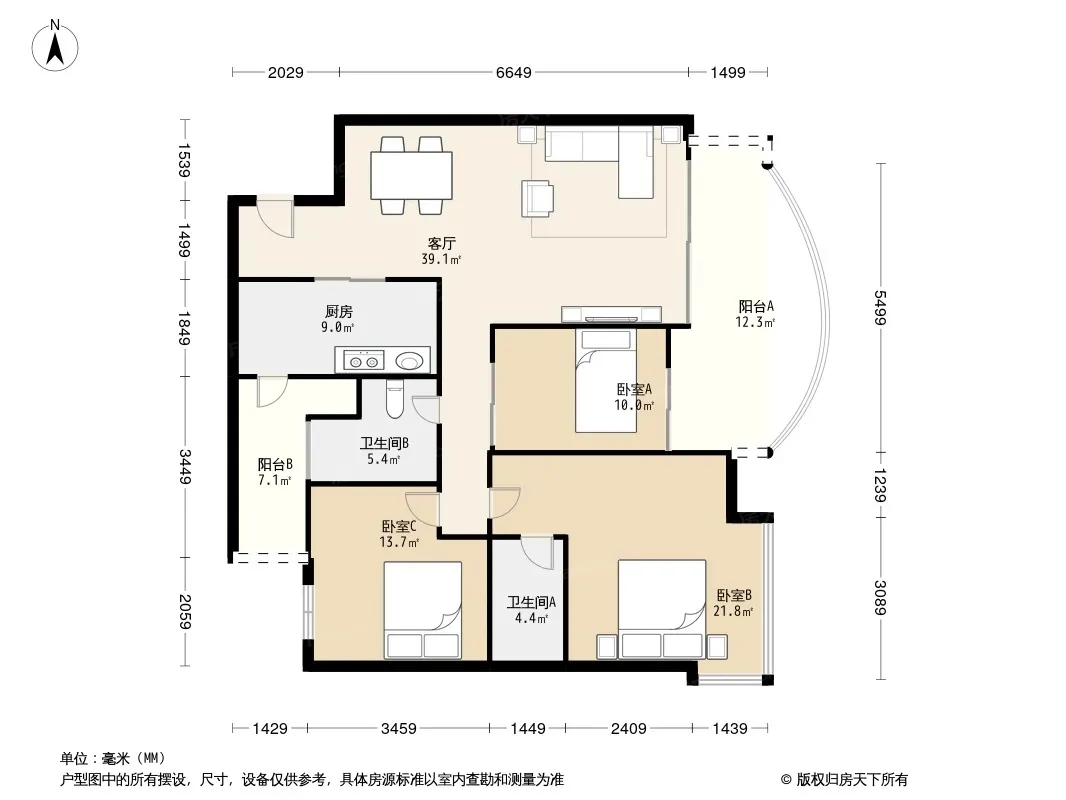 户型齐全,主打户型方正,双阳台,主卧朝南三居