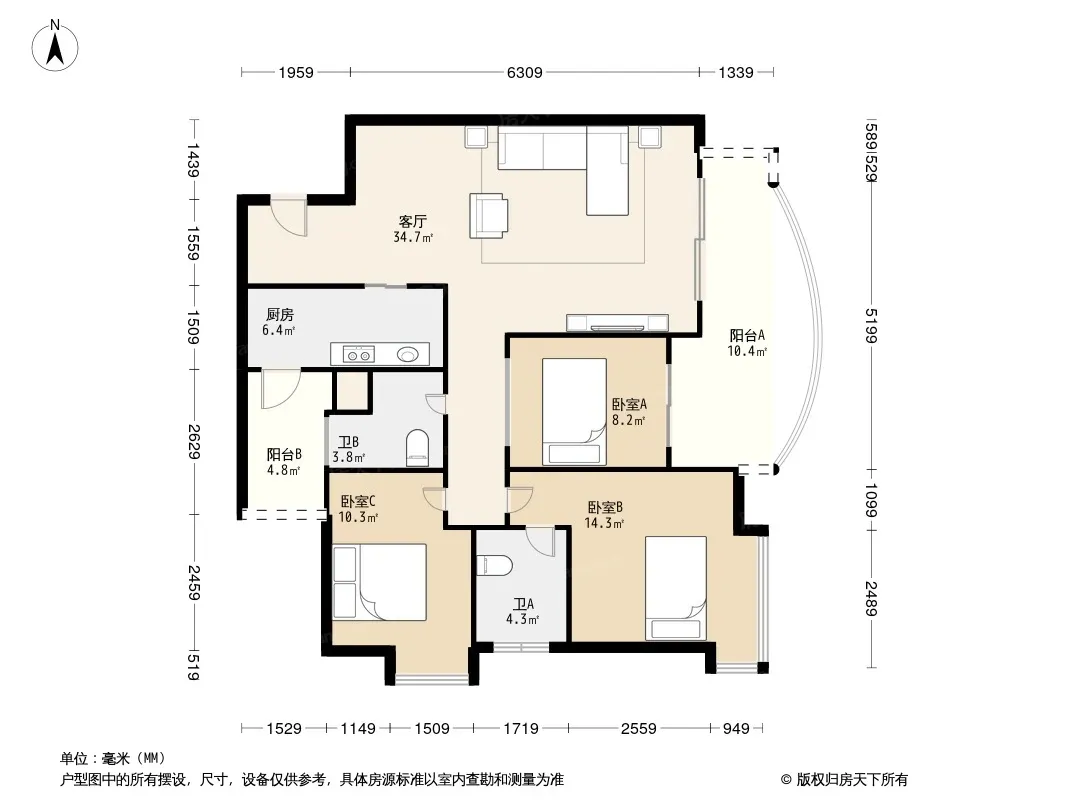 户型齐全,主打户型方正,双阳台,主卧朝南三居