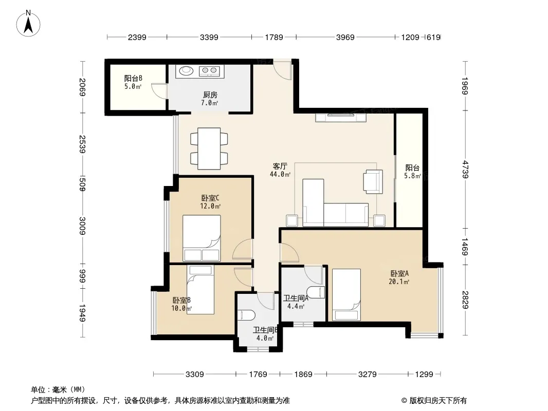 户型齐全,主打户型方正,双阳台,主卧朝南三居