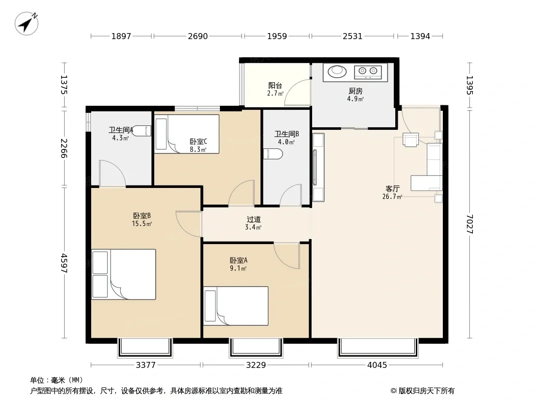 *获取完整户型报告,同时会有免费语音讲解服务