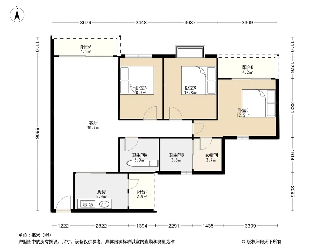 户型齐全,主打明卫三居
