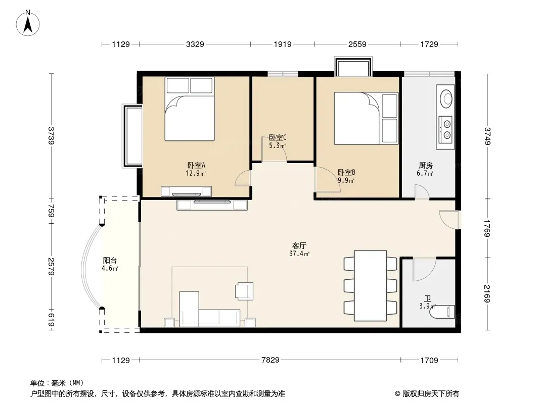 *获取完整户型报告,同时会有免费语音讲解服务