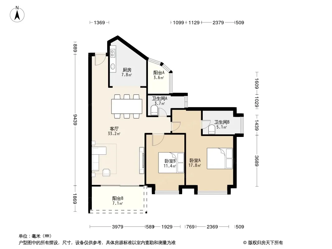 户型齐全,主打户型方正,明卫,独立衣帽间,双阳台三居