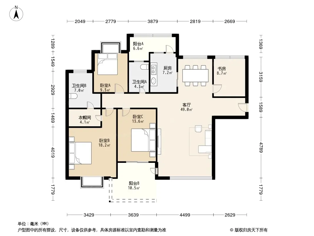 户型齐全,主打明厨,明卫,双阳台,主卧朝南,独立衣帽间,双卧朝南三居