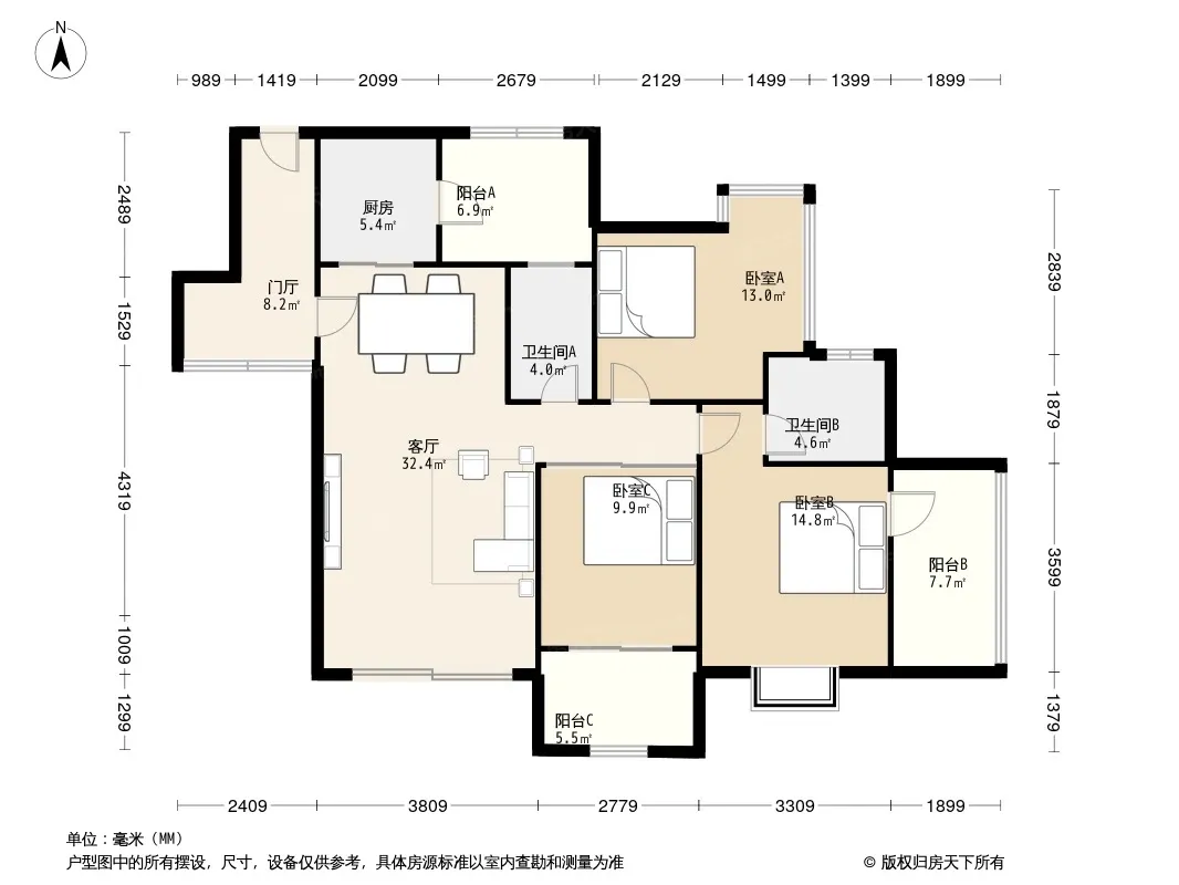 户型齐全,主打户型方正,明卫,客厅朝南,双阳台,双卧朝南三居