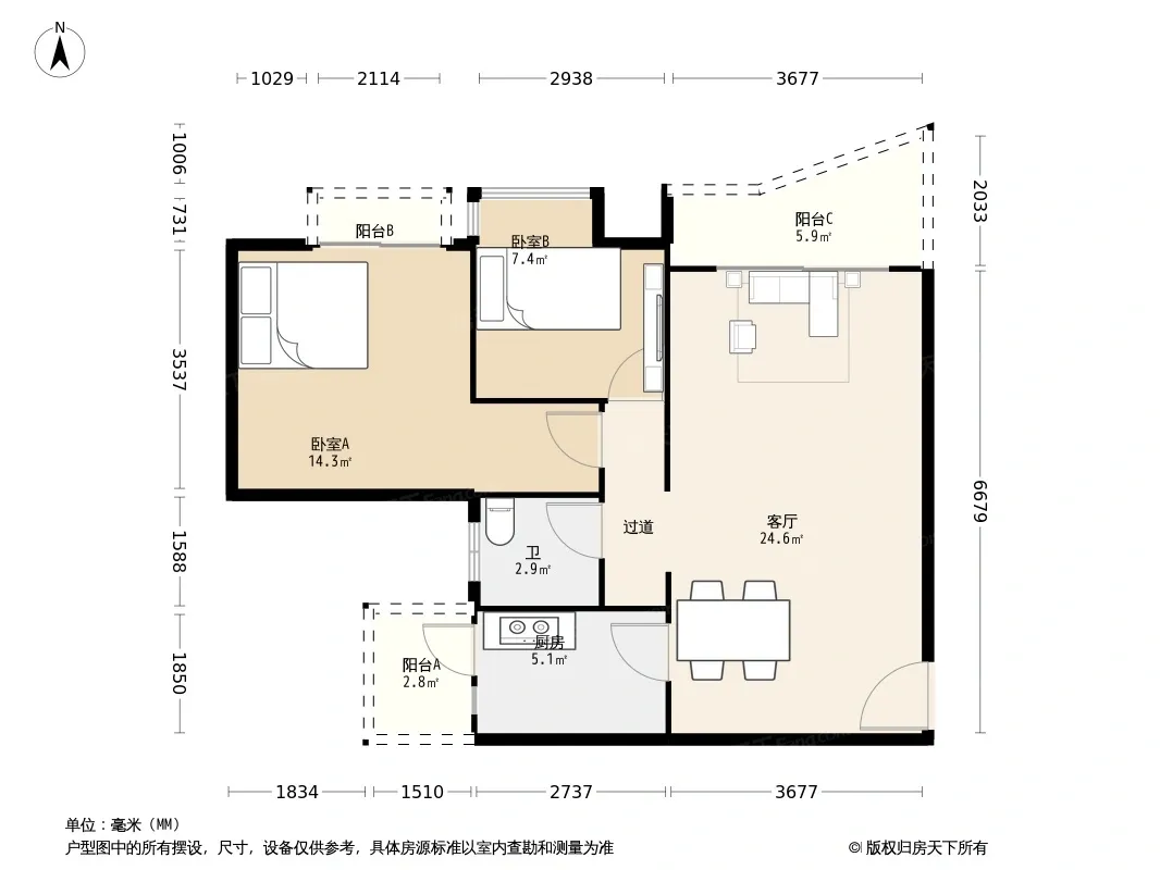 户型齐全,主打明卫,双阳台三居