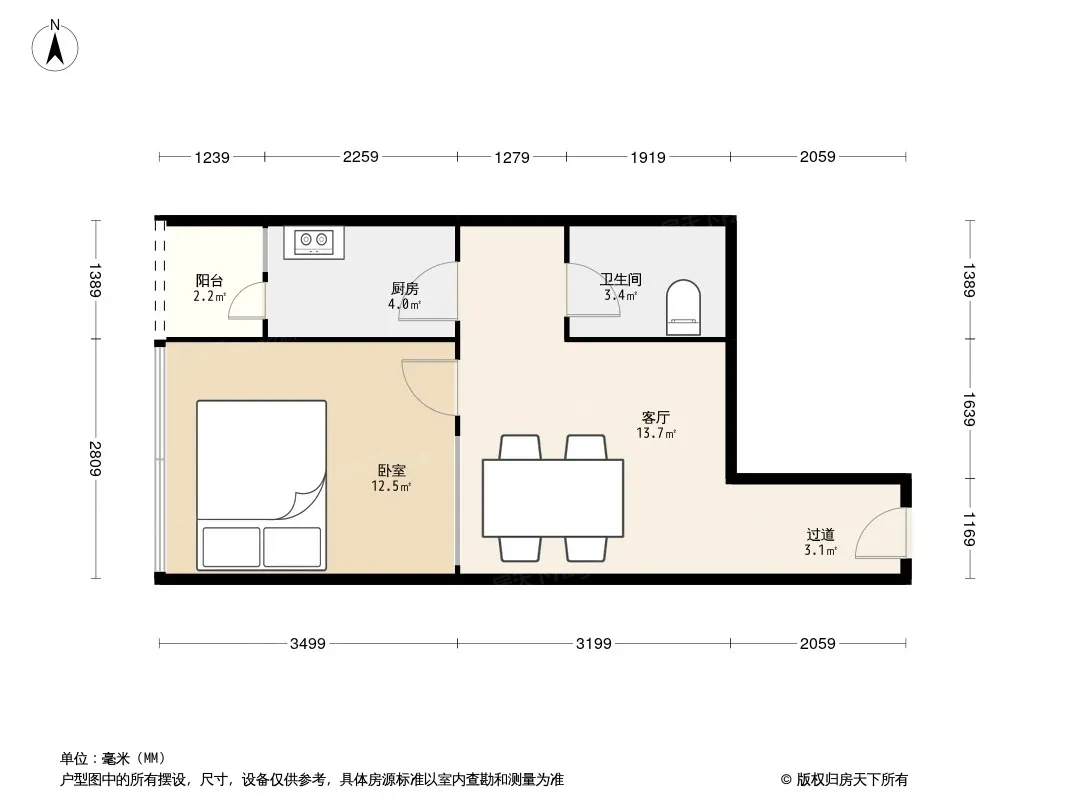 户型齐全,主打明厨,客厅朝南二居