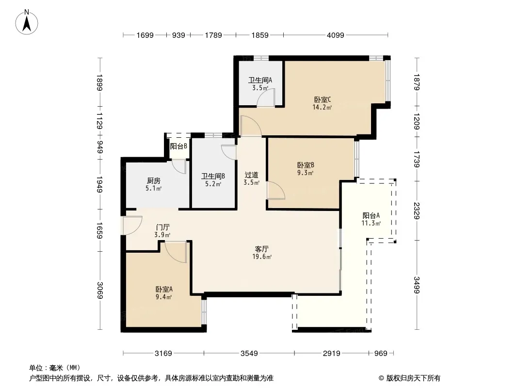 户型齐全,主打户型方正,动静分离三居