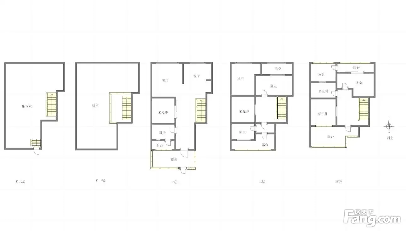 联排中户3+2户型下沉花园 花园40平米左右