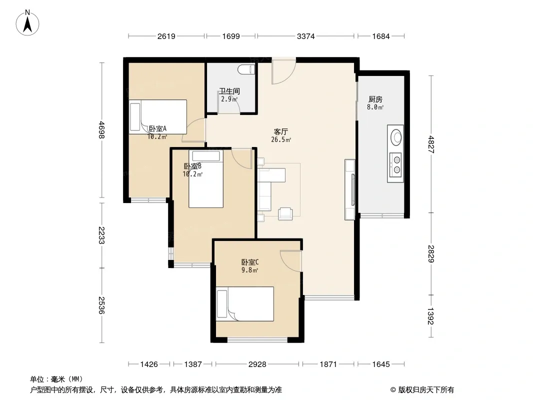 户型齐全,主打明卫,明厨三居