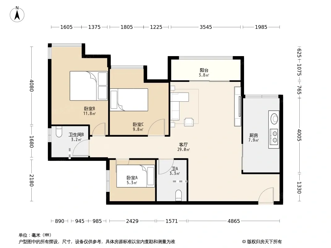 户型齐全,主打明卫,明厨三居