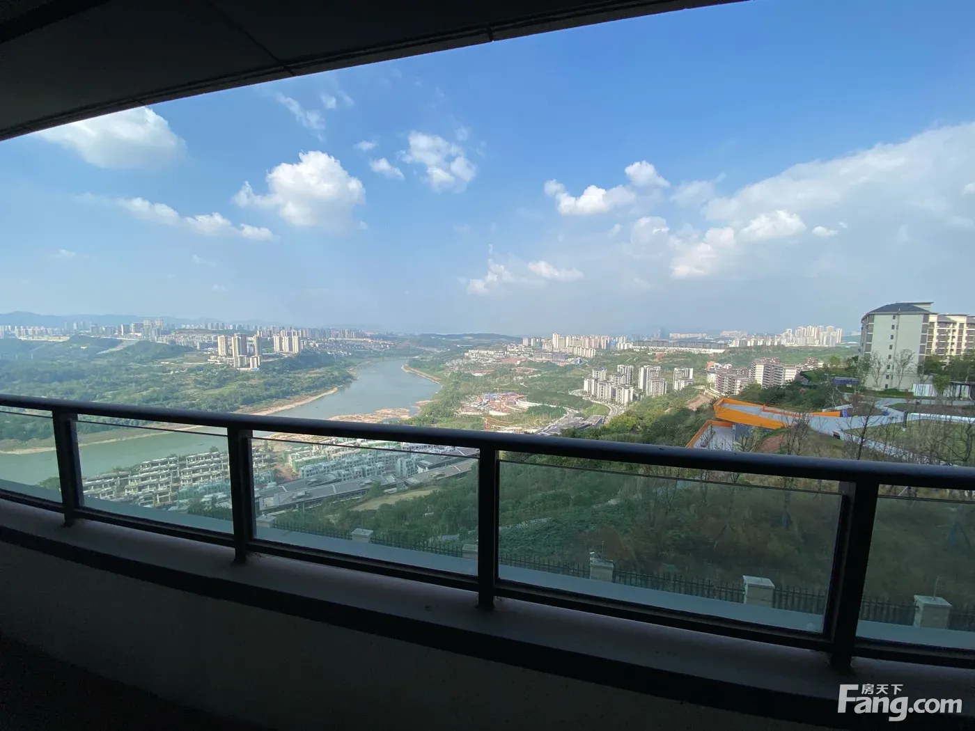 此房为临崖,270度L型大横厅+大阳台