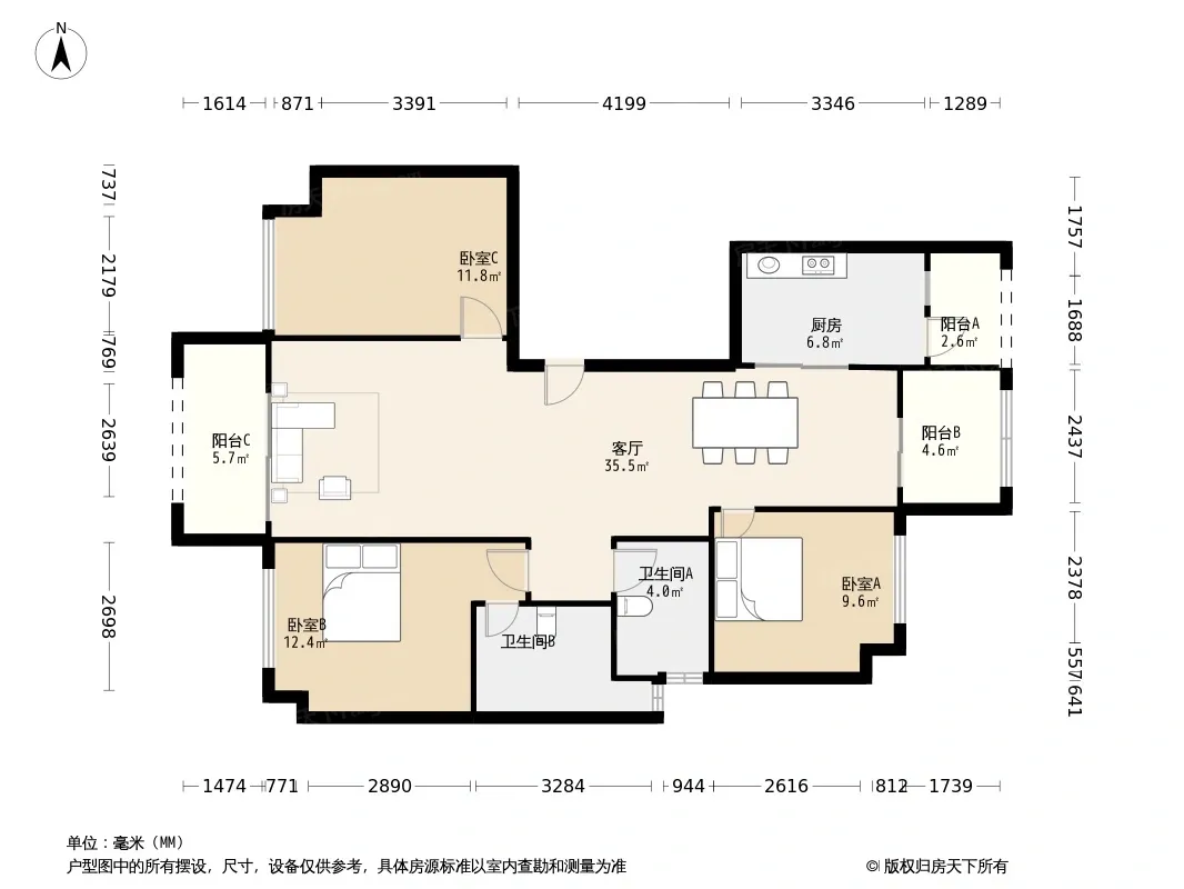 户型齐全,主打明厨,明卫,双阳台四居