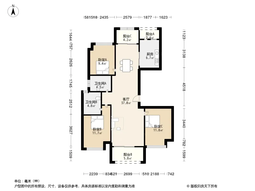 户型齐全,主打明厨,明卫,双阳台四居