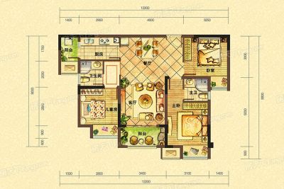 户型齐全,主打户型方正,采光充足,主卧带卫三居