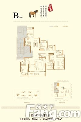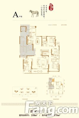 金辉御江六骏户型主要有215平-230平的户型方正,独立衣帽间,明卫,双阳台的五居 、218平-218平的全明格局,户型方正的四居 。