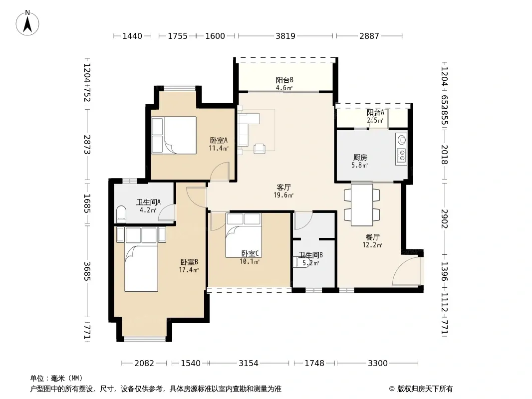 户型齐全,主打明卫三居