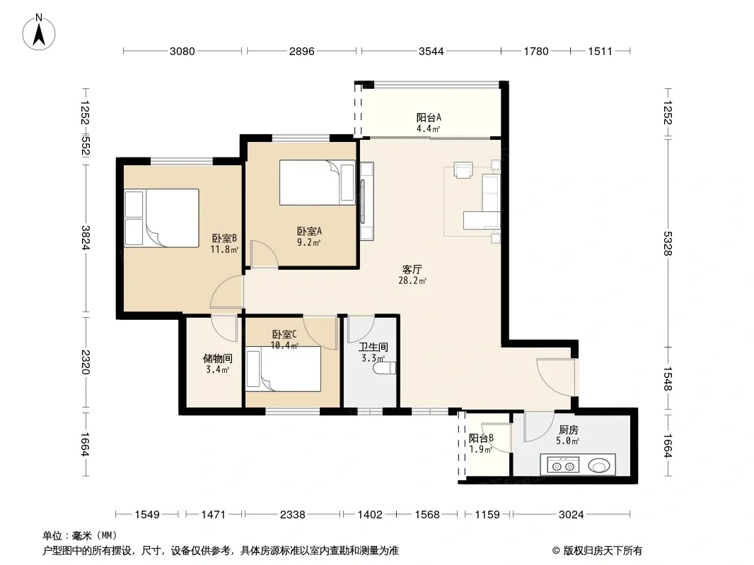 户型齐全,主打明卫三居