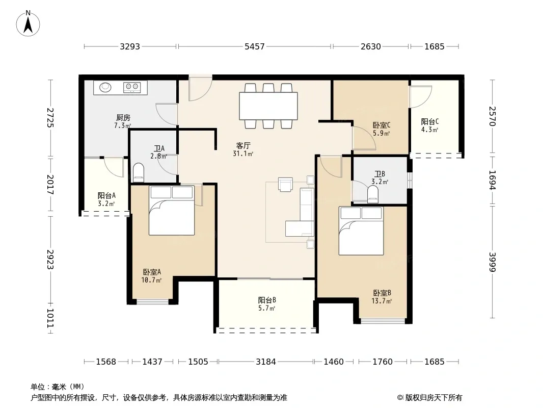 户型齐全,主打明卫,双阳台三居