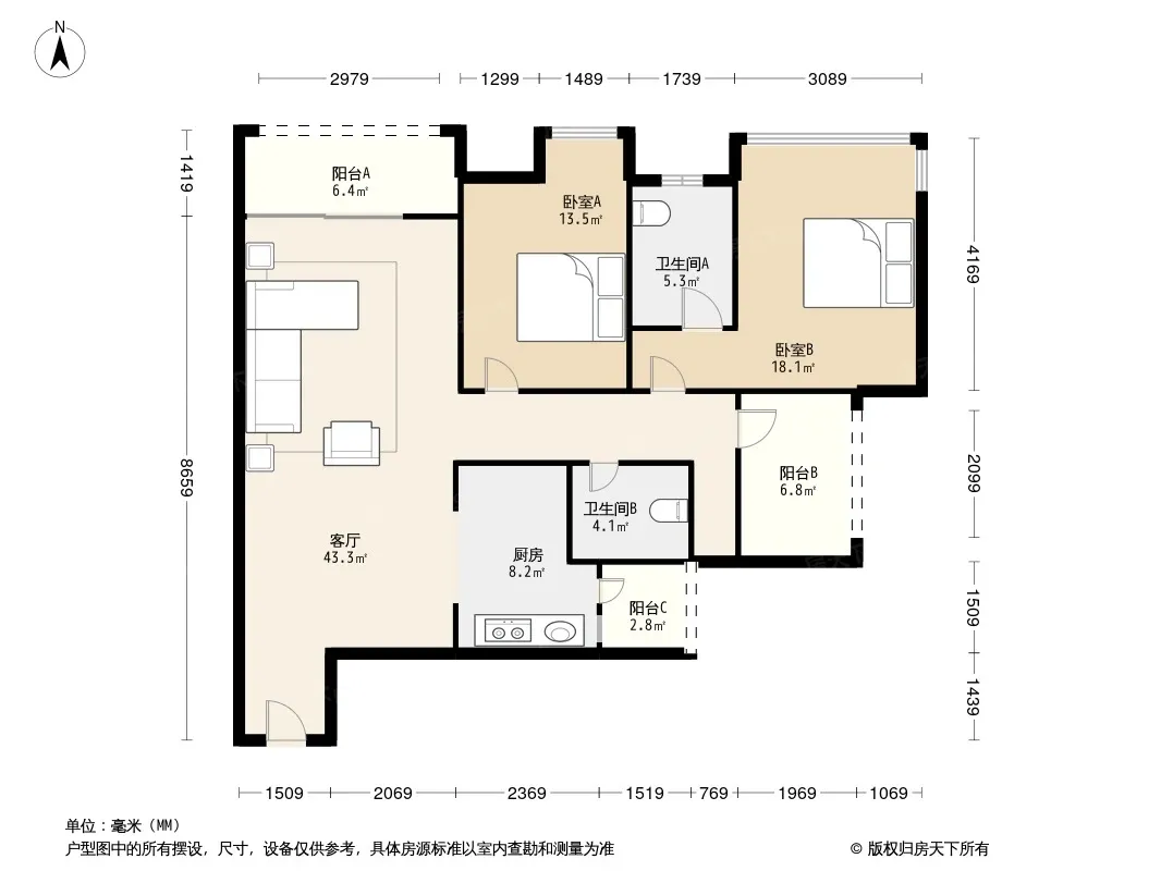 *获取完整户型报告,同时会有免费语音讲解服务