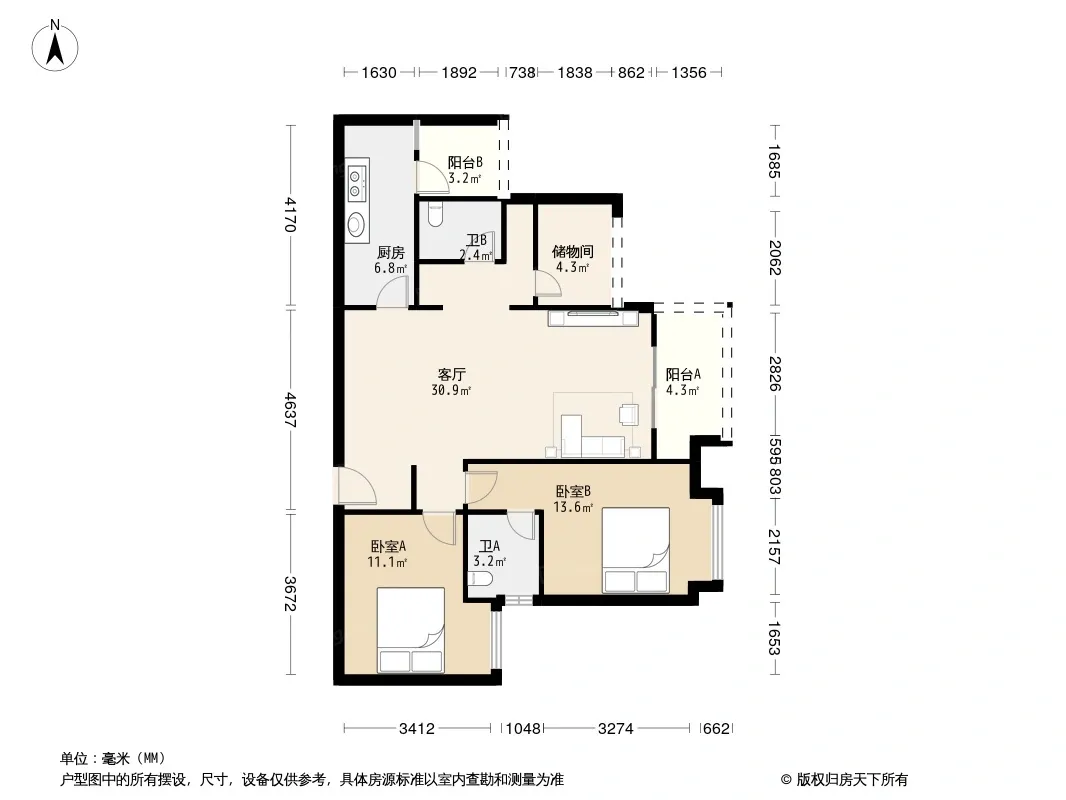 *获取完整户型报告,同时会有免费语音讲解服务