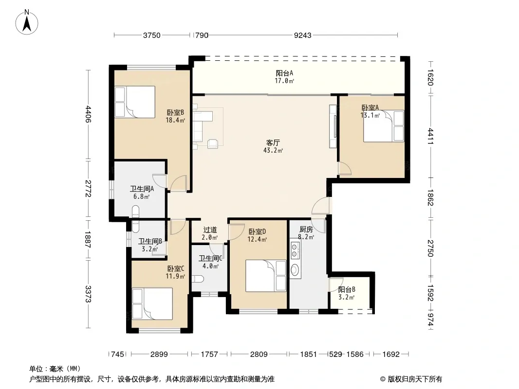 户型齐全,主打全明格局,户型方正,动静分离四居