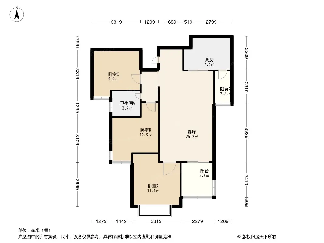 户型齐全,主打观景飘窗,L型厨房三居