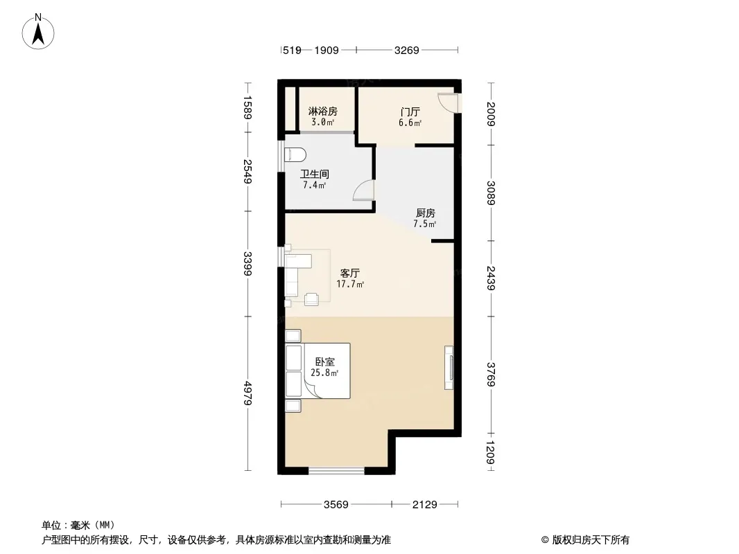 户型齐全,主打户型方正,明卫,客厅朝南,主卧朝南一居