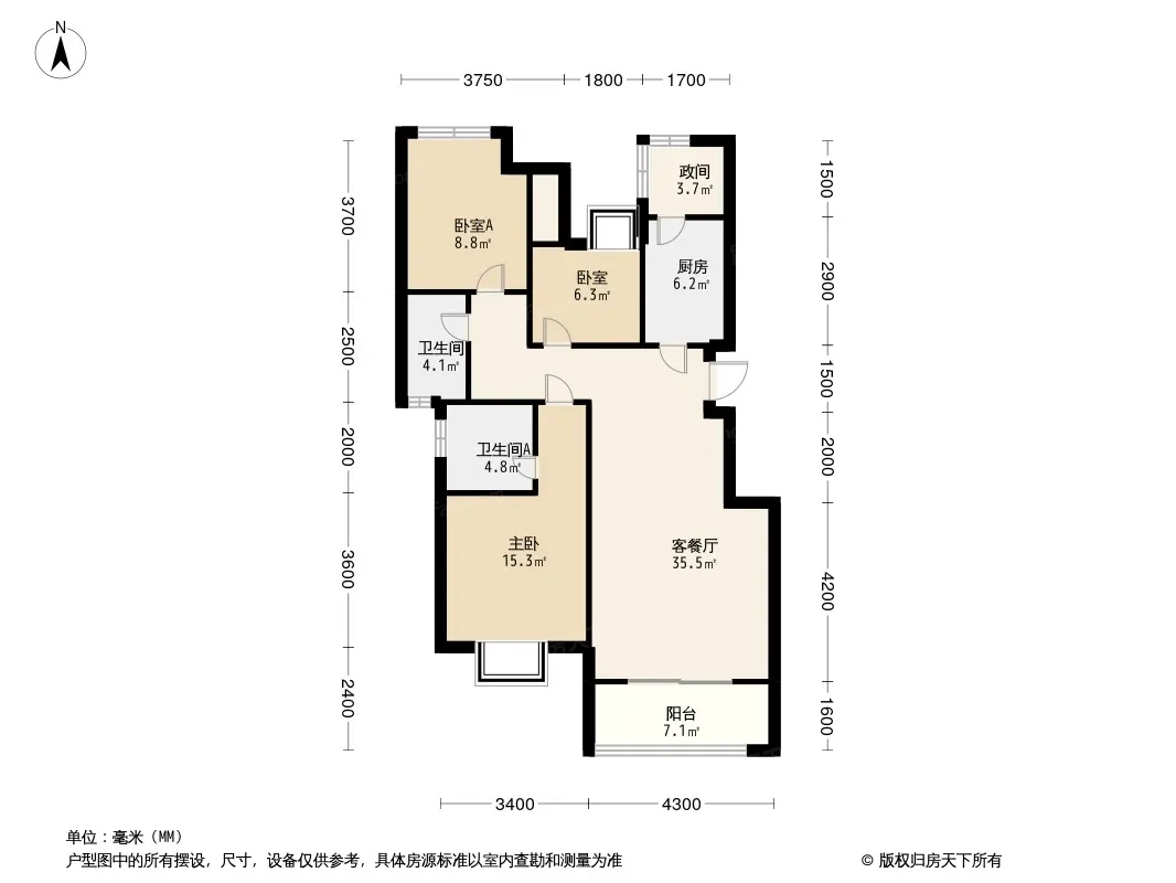 户型齐全,主打采光充足,带露台,南北通透,全明格局,高附赠空间四居
