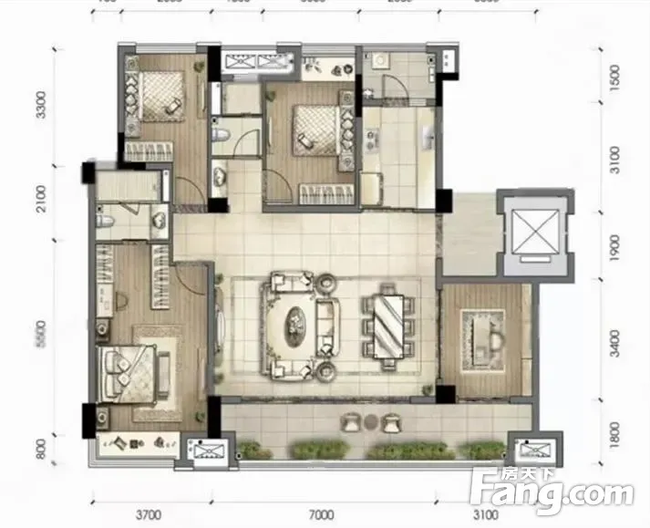 户型齐全,主打动静分离,采光充足三居