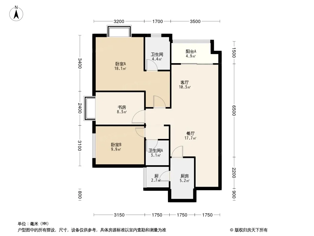 户型齐全,主打动静分离,采光充足三居