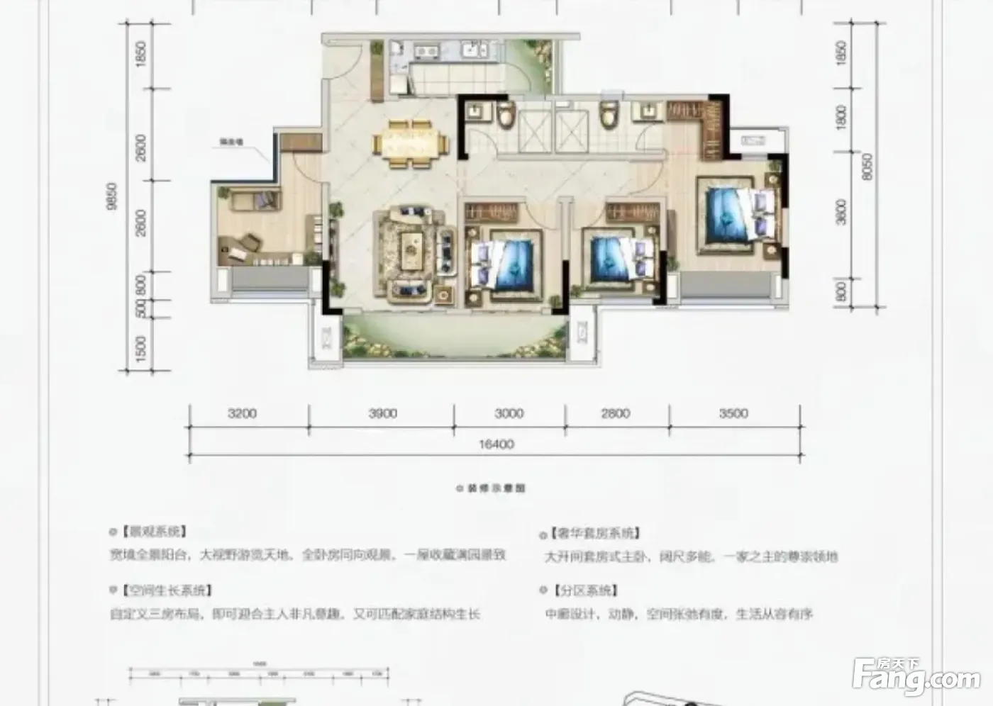户型齐全,主打南北通透,户型方正,动静分离,采光充足,主卧朝南三居