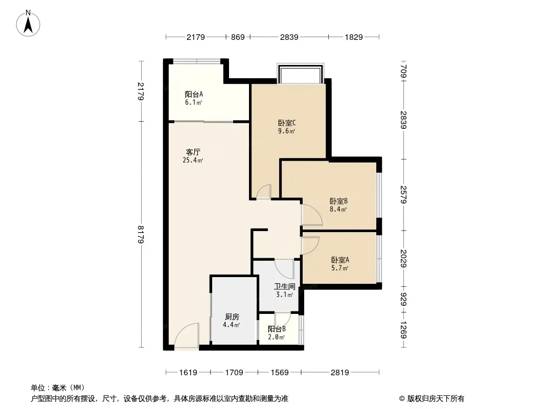 户型齐全,主打户型方正,动静分离三居