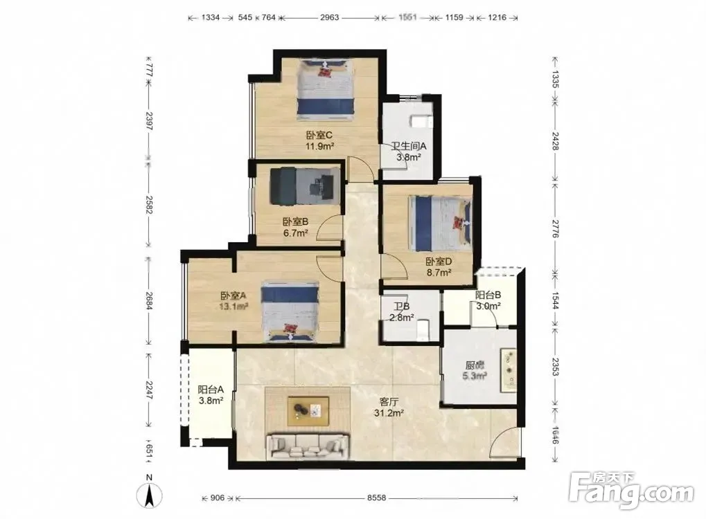 户型齐全,主打户型方正,明卫,客厅朝南四居