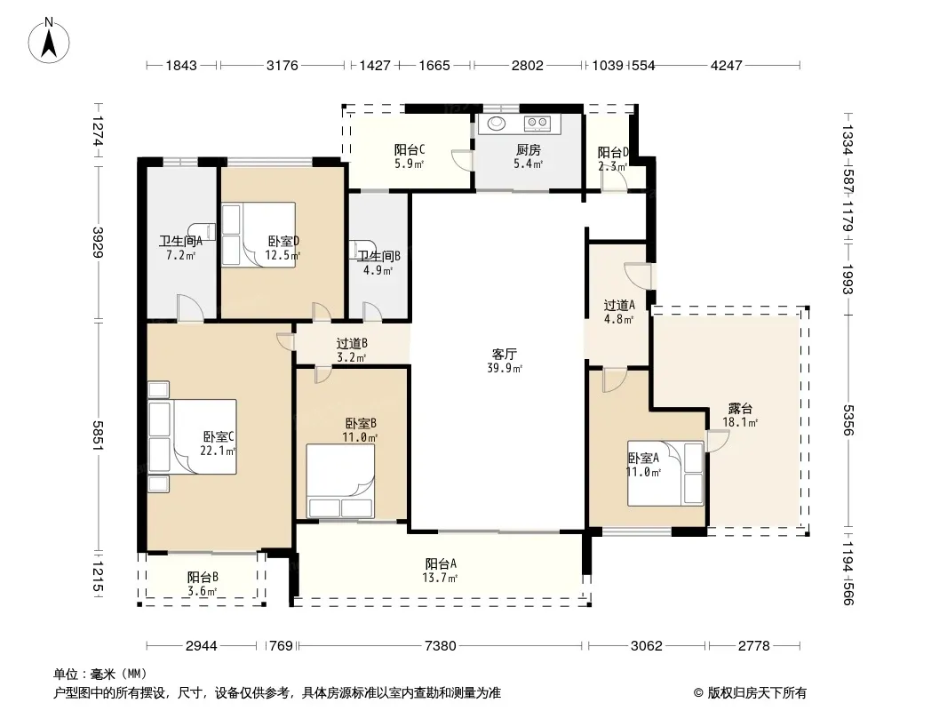 户型齐全,主打户型方正,明厨,明卫,双阳台四居