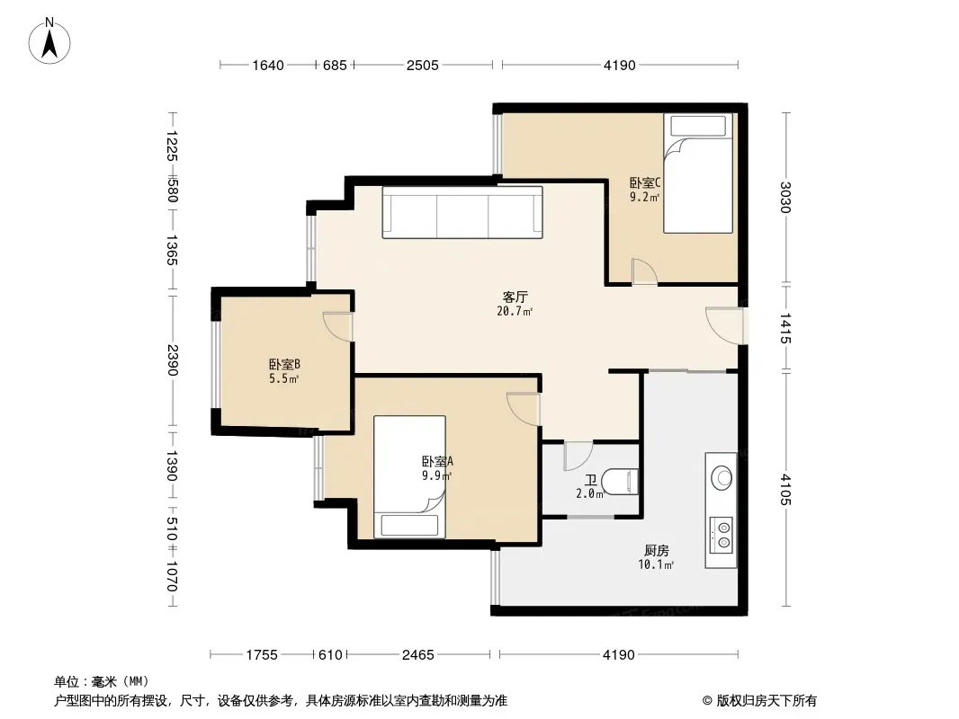 户型齐全,主打客厅朝南三居