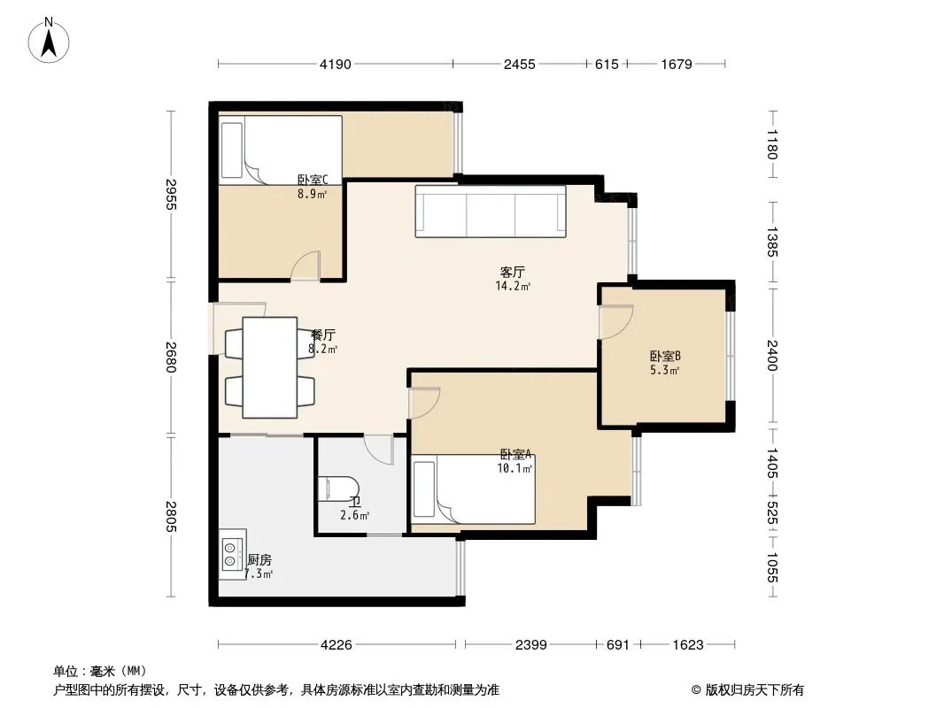 户型齐全,主打客厅朝南三居