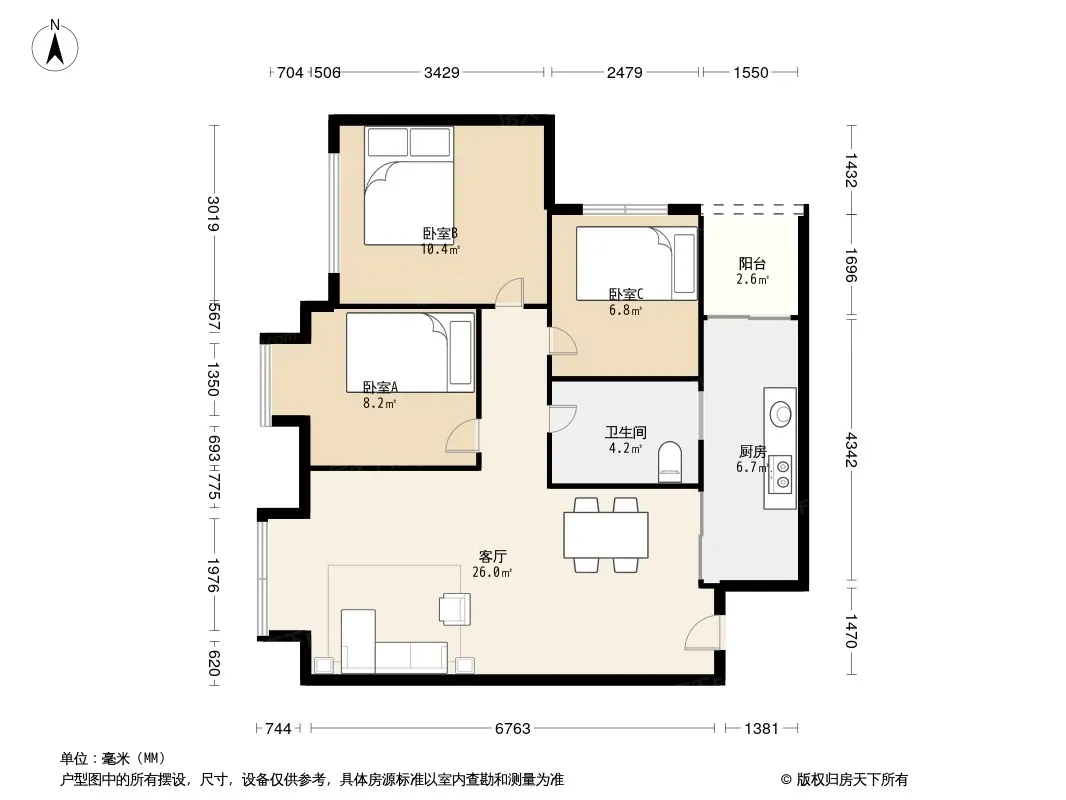 户型齐全,主打客厅朝南三居