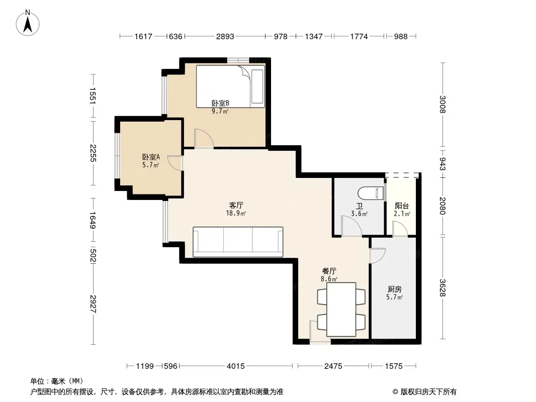 户型齐全,主打明厨,客厅朝南,明卫三居