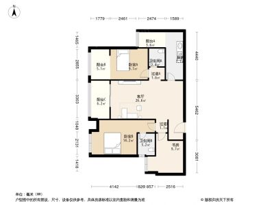金科天元道一期一组团 2室1厅 东南