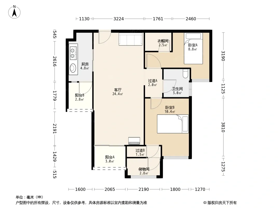 户型齐全,主打独立衣帽间,明卫二居