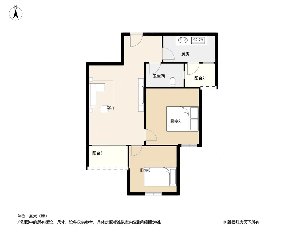 户型齐全,主打明厨,客厅朝南二居