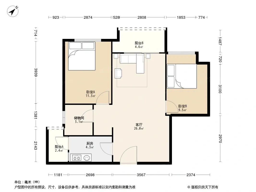 *获取完整户型报告,同时会有免费语音讲解服务