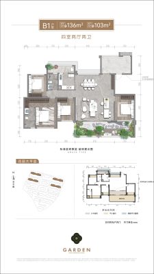 保利拾光年户型主要有122平-143平的南北通透,采光充足,全明格局,户型方正,大面宽阳台的四居 。