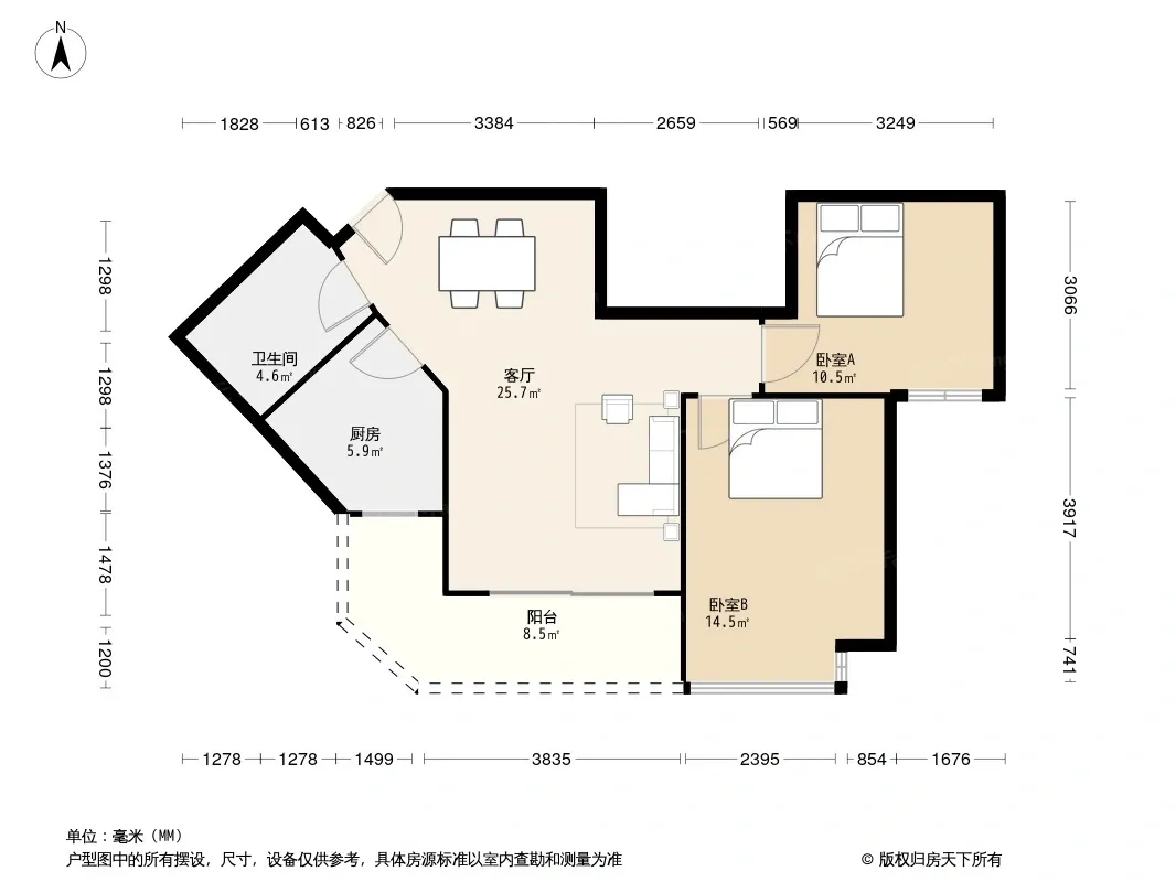 户型齐全,主打双阳台,双卧朝南三居